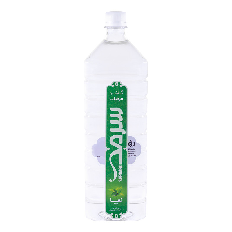 عرق نعنا سرمد داخل پت بهداشتی شفاف با حجم 2000 میلی لیتر در بسته بندی بسیار شکیل محصول قمصر کاشان است.