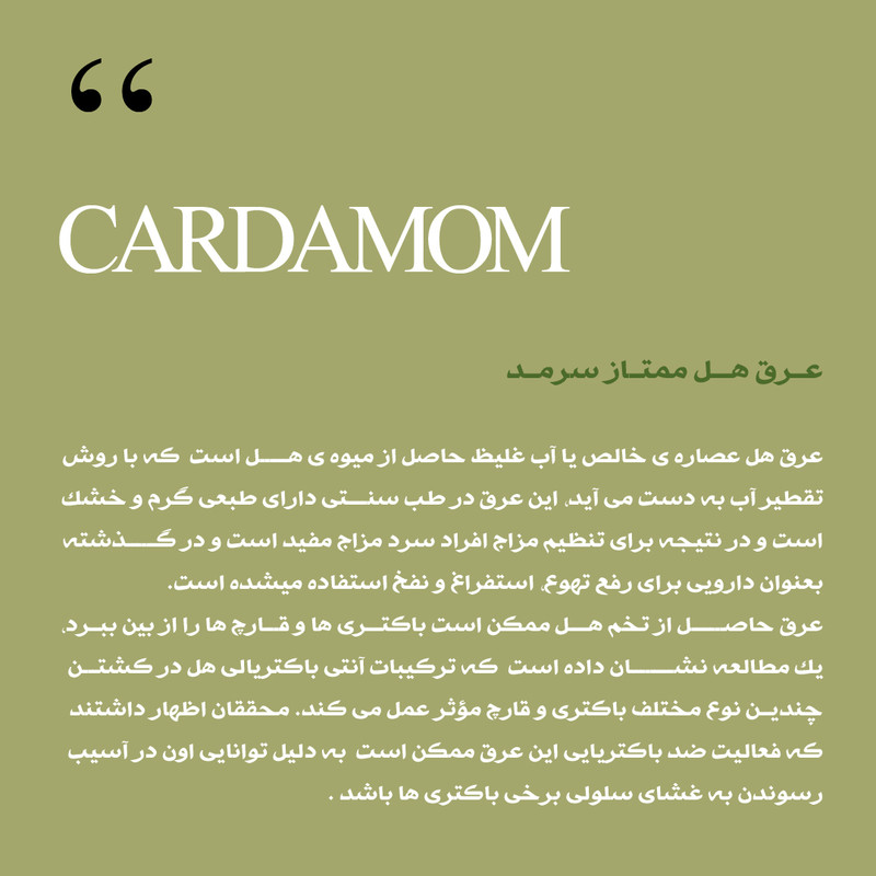 سایر توضیحات : عرق هل سرمد داخل پت بهداشتی شفاف با حجم 1000 میلی لیتر در بسته بندی بسیار شکیل محصول قمصر کاشان است.
