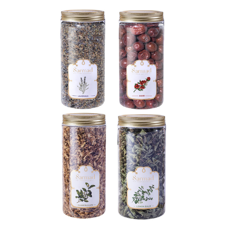 پک چهار عددی دمنوش سرمد حاوی چهار بسته 1-به لیمو 2-عناب 3-بهارنارنج 4-اسطوخودوس می باشد. بهترین زمان و نحوه مصرف آن یک ساعت قبل خواب و به صورت ترکیب مساوی از هر کدام می باشد.