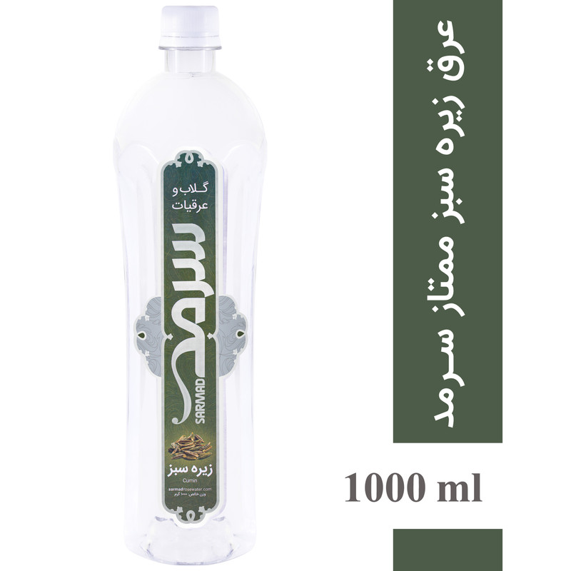 عرق زیره سبز سرمد داخل پت بهداشتی شفاف با حجم 1000 میلی لیتر در بسته بندی بسیار شکیل محصول قمصر کاشان است.