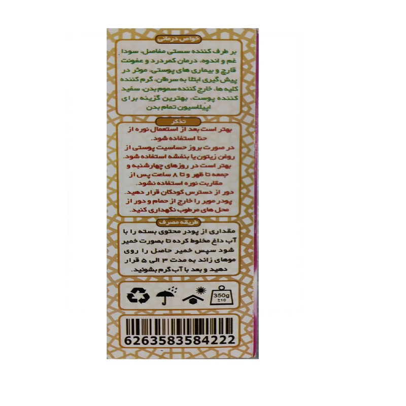 پودر موبر نور الزینه مدل بدون بو حاوی 5 بسته 70 گرمی پودر موبر میباشد.