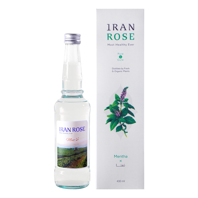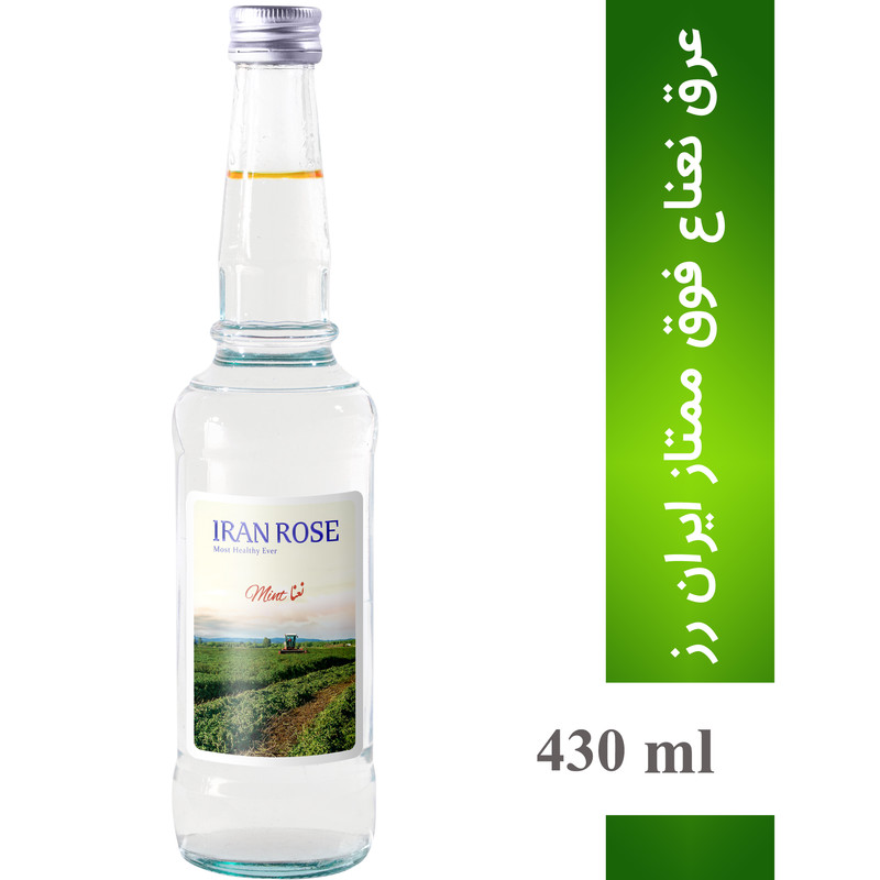 عرق نعنا ایران رز داخل ظرف شیشه ای شفاف با حجم 430 میلی لیتر در بسته بندی بسیار شکیل محصول قمصر کاشان است.